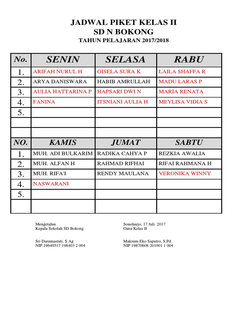 Contoh Format Jadwal Piket Guru Sd - Jadwal Piket Piket Kelas Ii - Maybe you would like to learn more about one of these?. We did not find results for: Check spelling or type a new query. Maybe you would like to learn more about one of these? Contoh format jadwal piket guru sd.